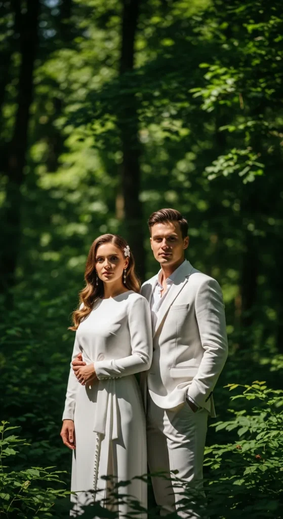 Crisp white outfits feel clean and refreshing, especially against lush green landscapes. It’s a bold choice that looks stunning in photos.