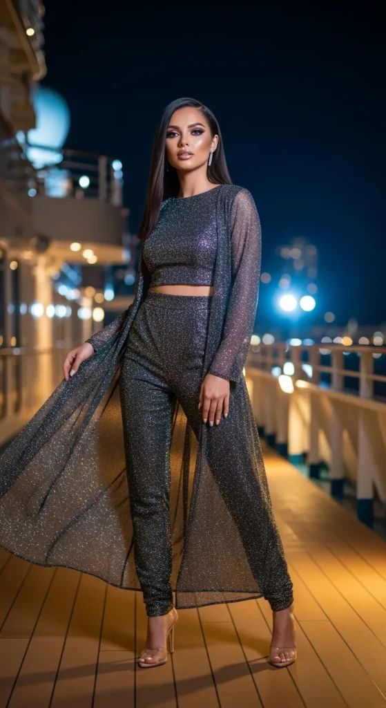 When the sun dips below the horizon and the ocean breeze turns silky cool, cruise nights transform into unforgettable party moments. This is your time to glow, feel confident, and step into outfits that capture both elegance and fun.
