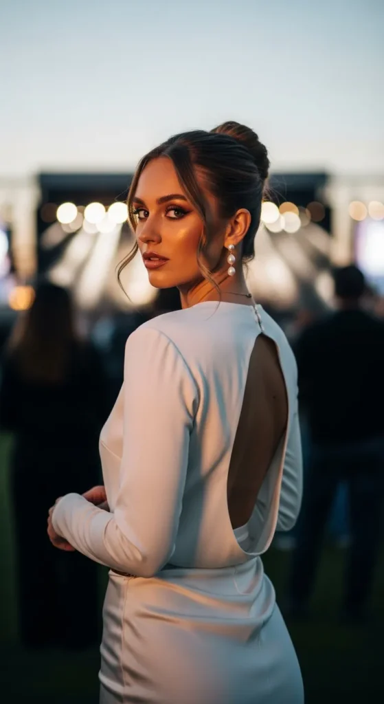 An open back top paired with a midi skirt feels elegant and sexy, offering a surprise detail that turns heads as you move through the crowd.