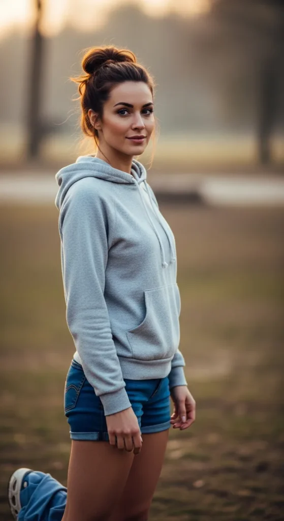 A lightweight hoodie with denim shorts is ideal for cooler summer mornings or breezy evenings. It blends comfort with a laid-back street feel.