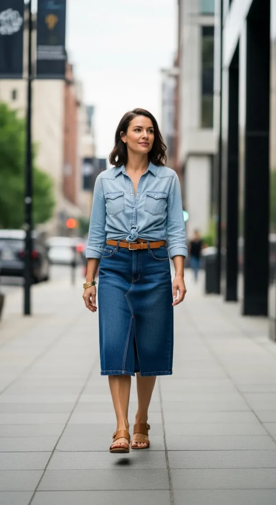 A fitted cardigan tucked into a pencil denim skirt feels classic yet modern. It’s ideal for semi-casual settings where you want to look put together.