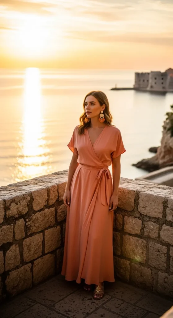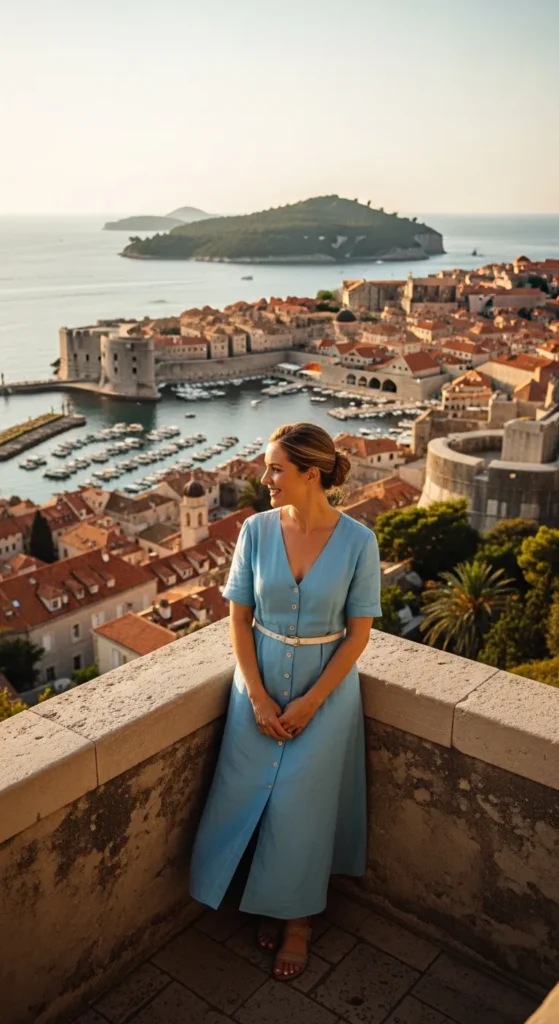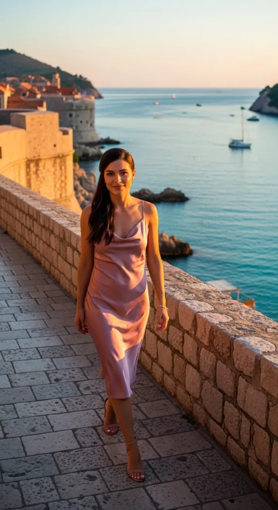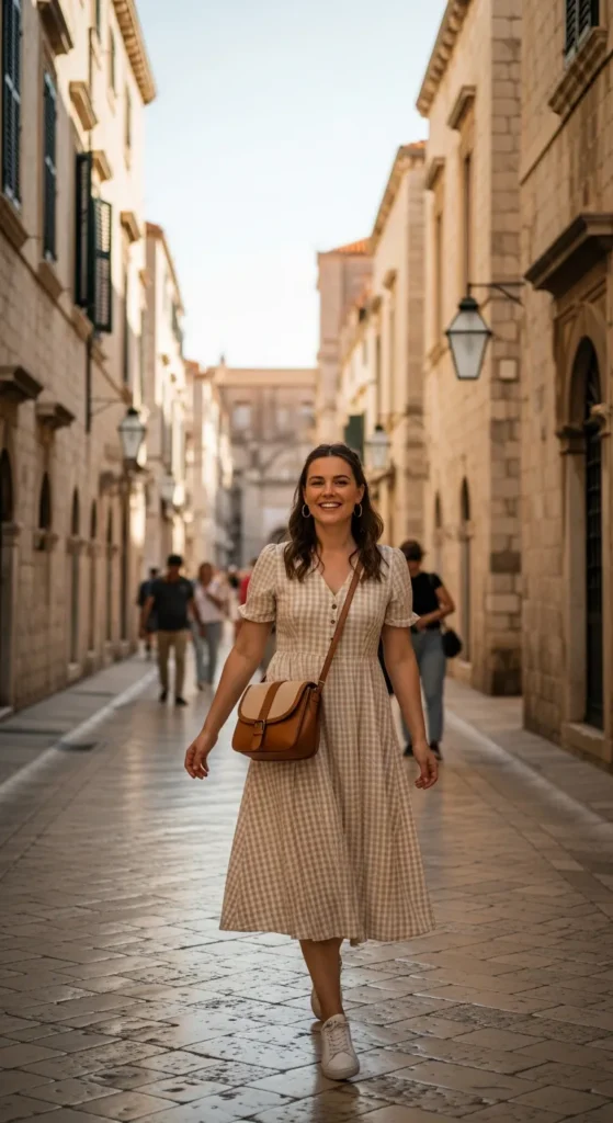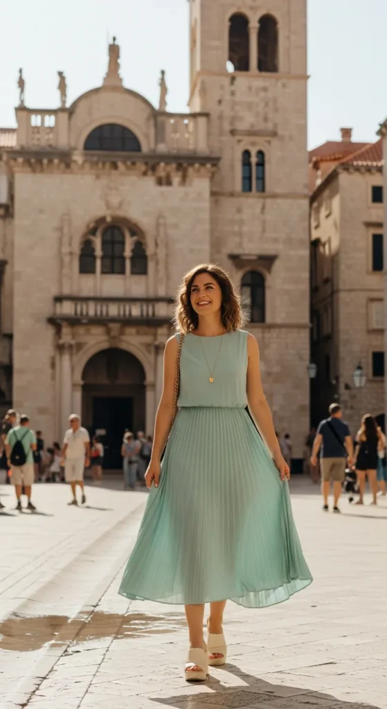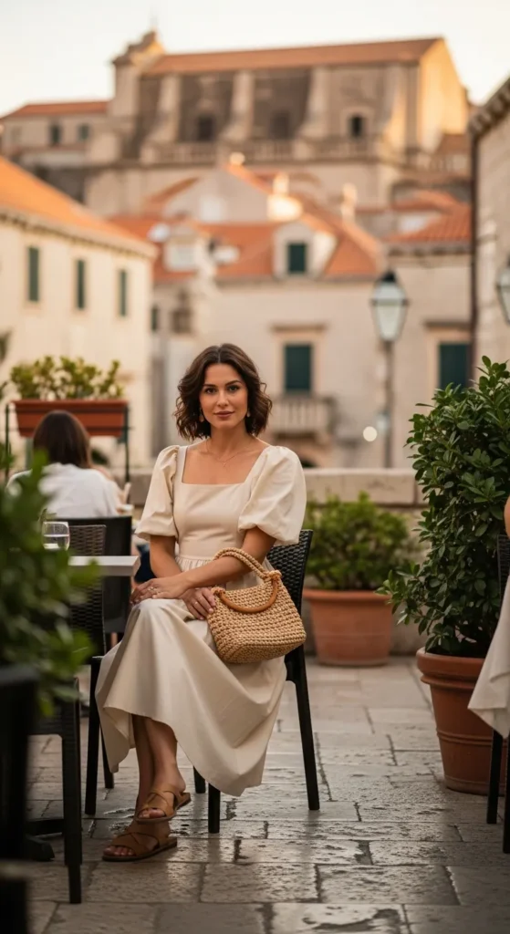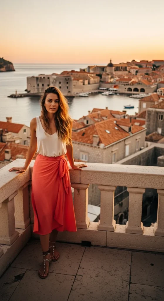 Stylist Suggestion: Add a woven straw hat and tan espadrilles. The natural textures complement the historic stone surroundings and protect you from the strong Adriatic sun without sacrificing charm.