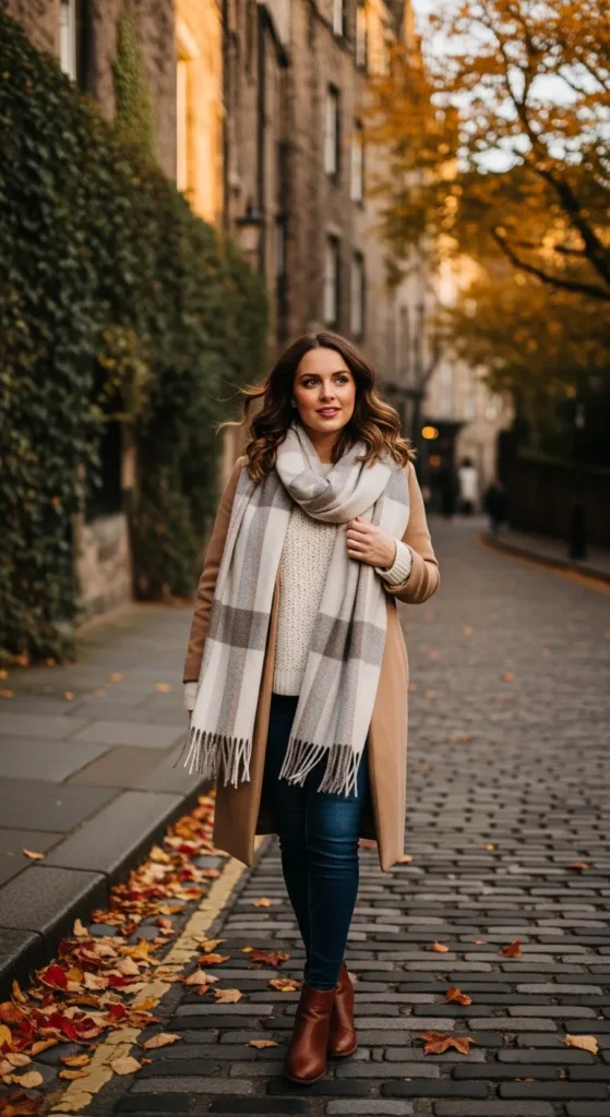 Stylist Suggestion: Choose a scarf in a subtle plaid to nod to Scottish heritage without going full traditional. It keeps the outfit authentic yet modern.