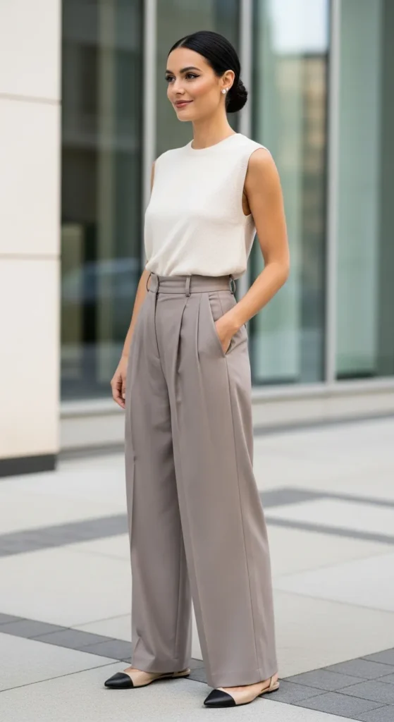 8. Fine Knit Sleeveless Top with Pleated Trousers