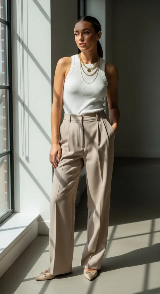 2. Ivory Ribbed Tank with Fluid Wide-Leg Pants