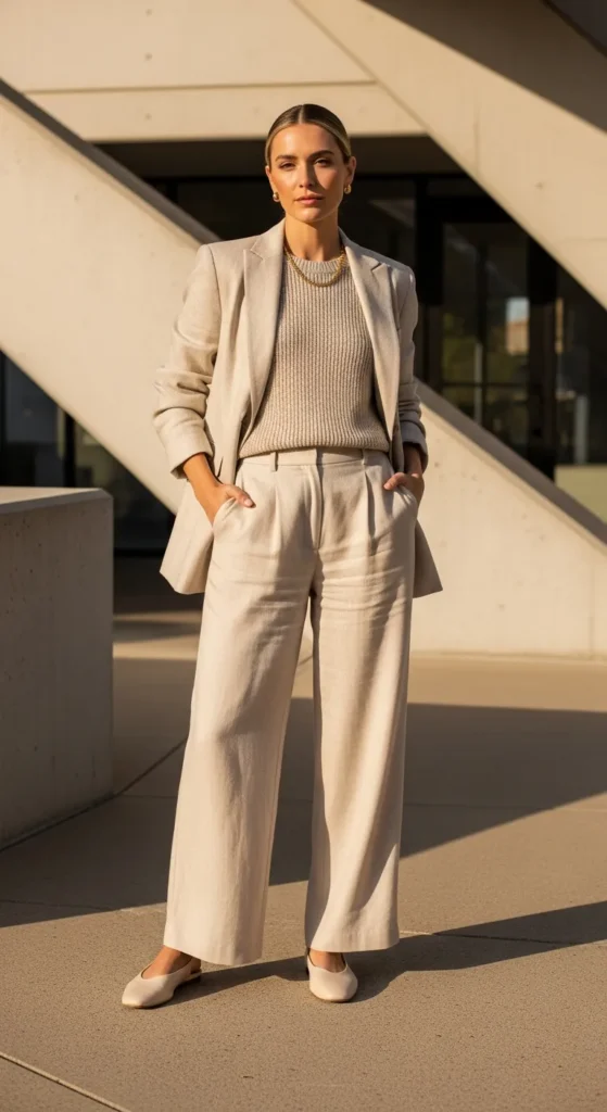 1. Relaxed Linen Shirt with Tailored Cream Trousers