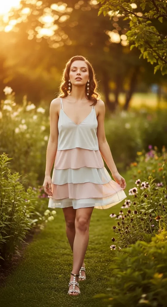 Stylist Suggestion: Choose delicate pearl earrings for this outfit. They add elegance without competing with the soft, flowing layers of the dress.