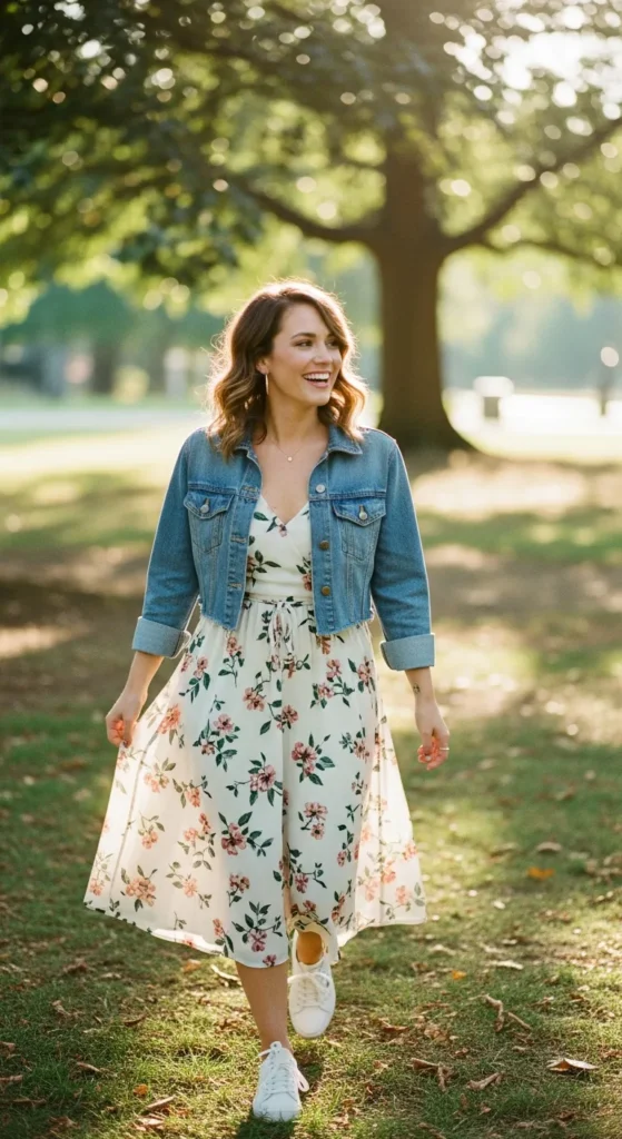 A lightweight sundress layered with a denim jacket gives a playful and approachable vibe. It’s perfect for daytime dates like ice cream walks or park picnics.