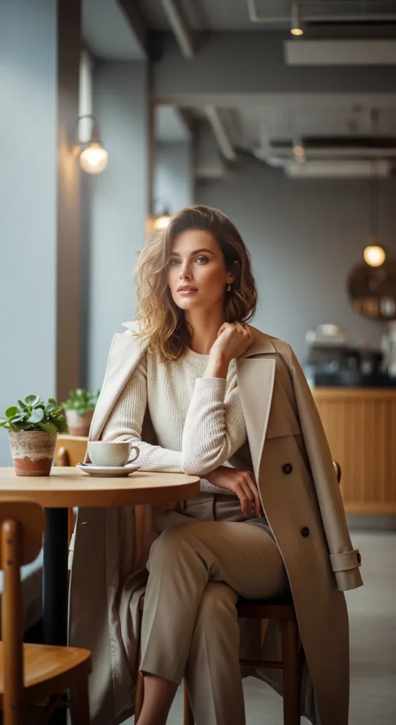 A layered neutral-toned outfit in beige, cream, or soft brown creates a refined, effortless aesthetic. It feels cohesive, calming, and visually expensive without trying too hard.