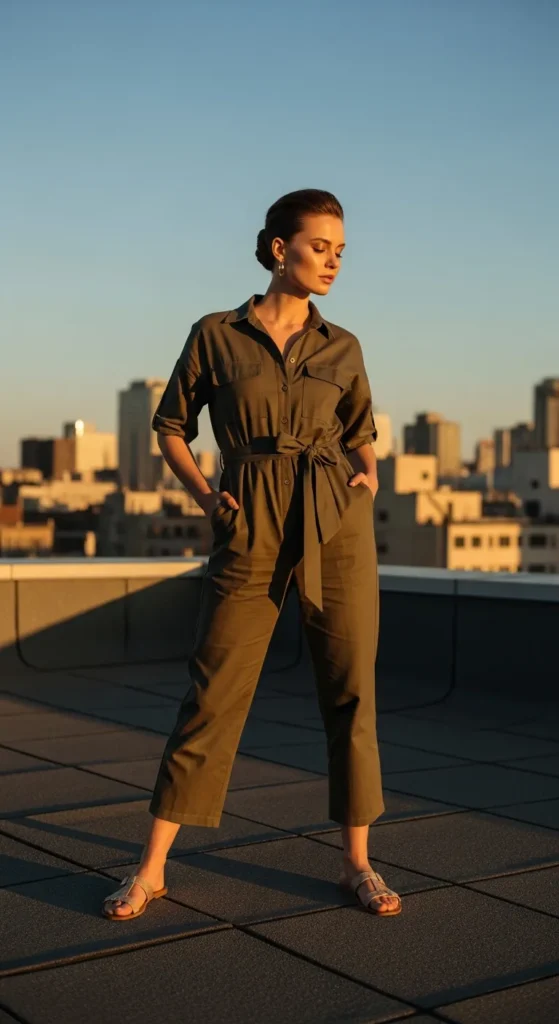 A relaxed jumpsuit with a cinched waist creates an easy one-piece outfit that still feels styled. It’s perfect for when you want zero stress but maximum impact.
