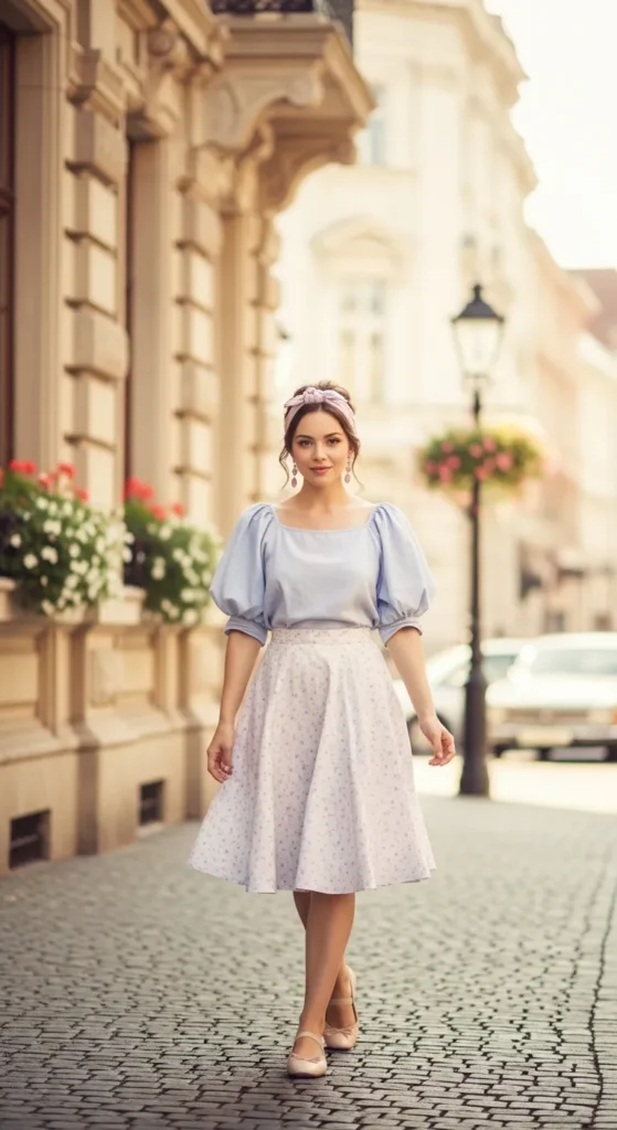 A puff sleeve blouse adds volume and charm, especially when paired with an A-line skirt that flatters the waist. It feels playful and slightly vintage-inspired.