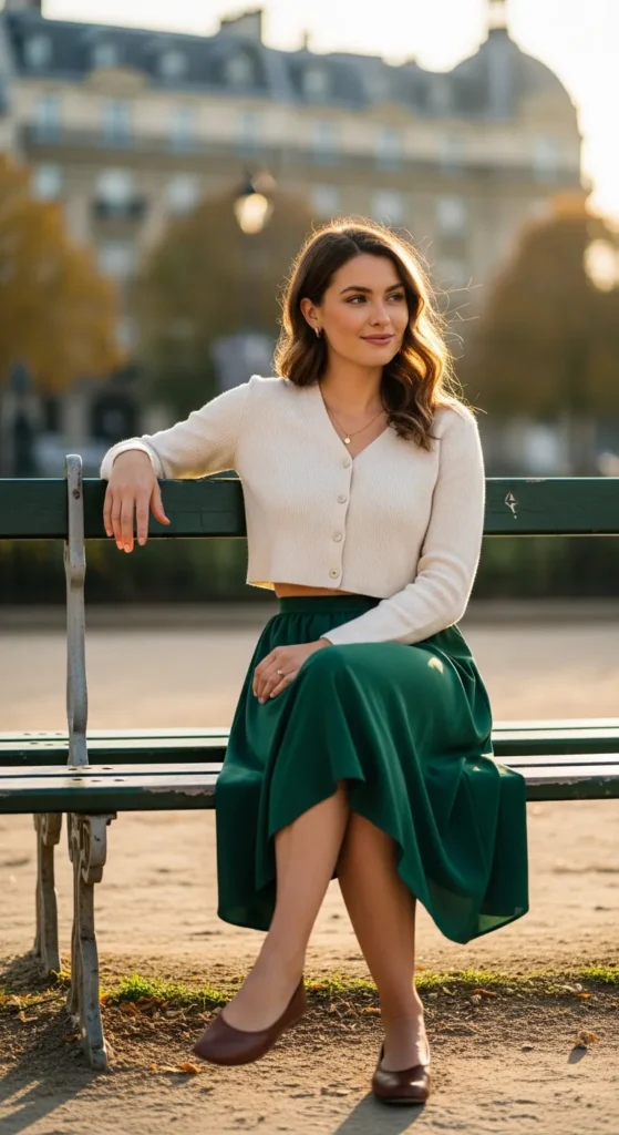 Stylist Suggestion: Choose ballet flats and a small shoulder bag. These classic pieces complete the look while maintaining that understated Parisian charm.