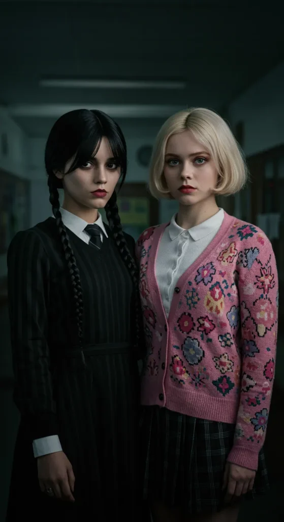 Perfect for contrasting personalities. One dark, moody Wednesday, and one bright, bubbly Enid.