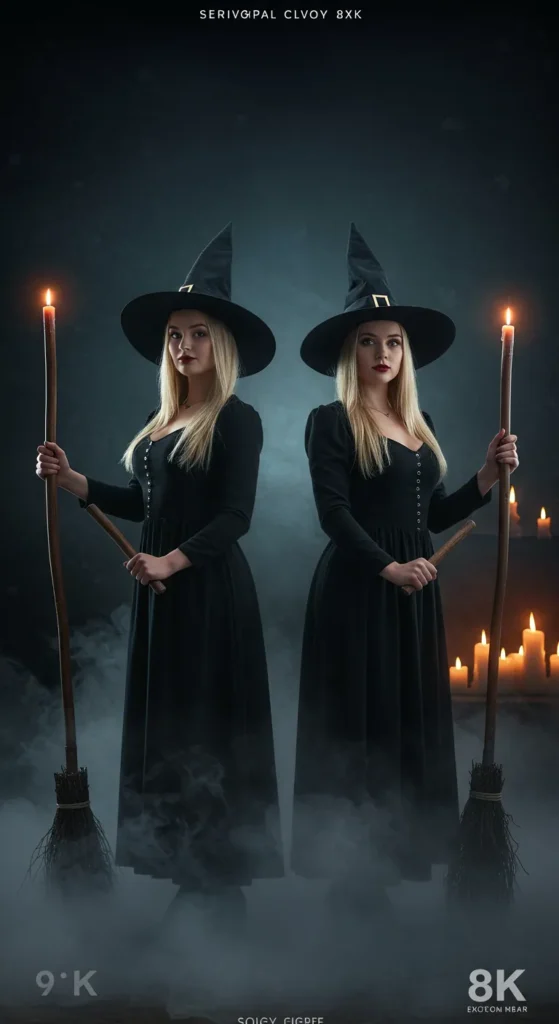 A spooky staple that’s always a hit. Long black dresses, pointed hats, and broomsticks bring instant Halloween energy.