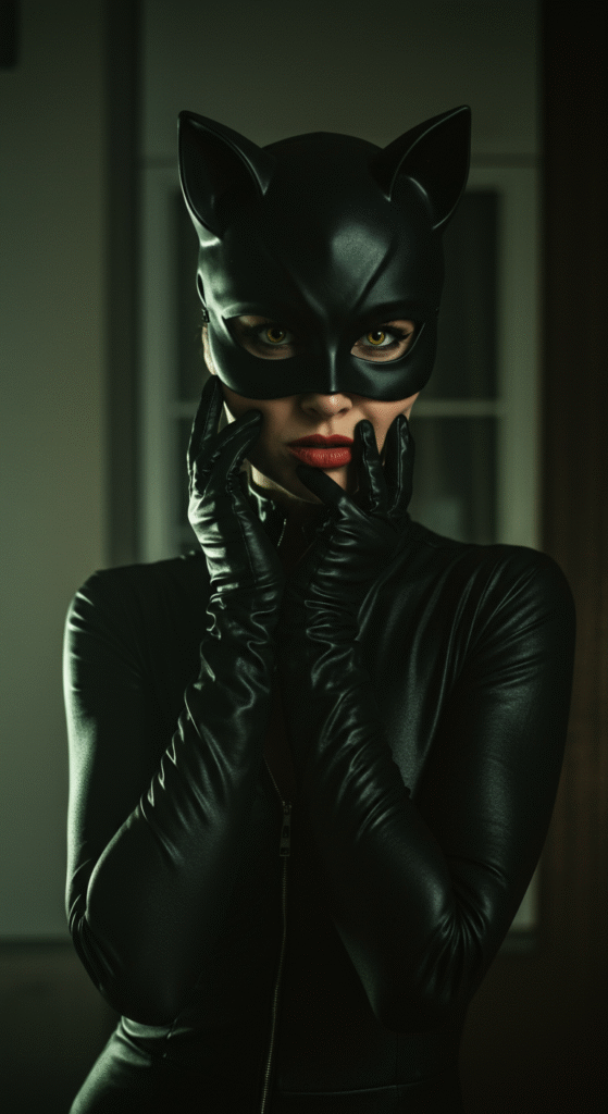 Sleek, dangerous, and irresistibly confident. The black catsuit fits like a secret, paired with gloves, a cat-eye mask, and that knowing smirk. You’re elegance in motion — and everyone knows it.