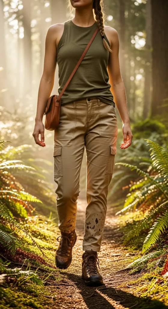 A fitted racerback tank with functional cargo capris merges freedom of movement with practical storage for snacks, maps, or essentials. Earth tones match nature effortlessly.