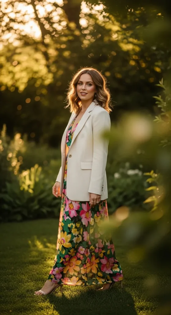 Pairing a blazer with a flowy maxi dress creates movement and structure in one look. It’s effortlessly feminine with a hint of sharp tailoring.