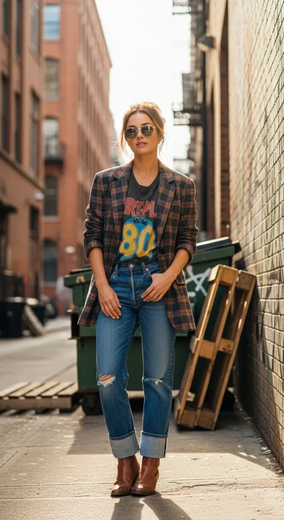 Pairing a blazer with a graphic tee and denim adds personality to a structured piece. It’s expressive, casual, and perfect for showcasing your style without compromising comfort.