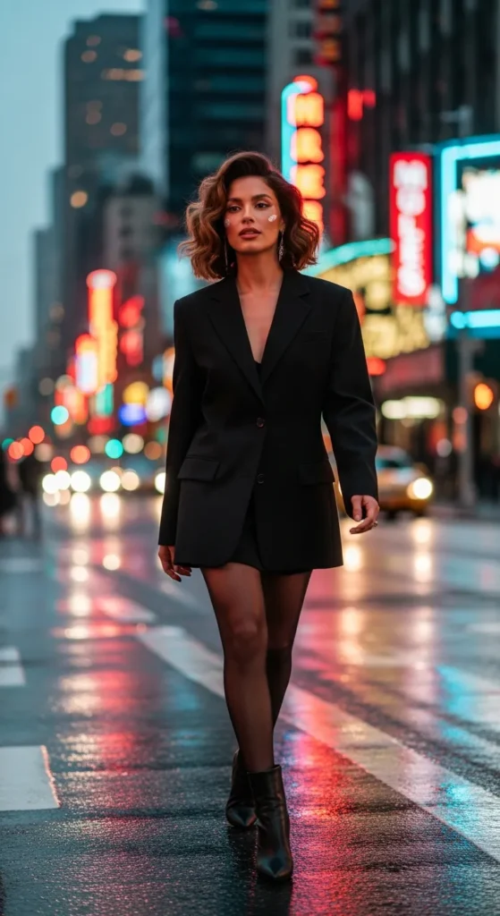 A blazer styled with a mini skirt brings a playful yet structured vibe. It’s perfect for nights out or stylish daytime plans where you want to feel confident and a little daring.