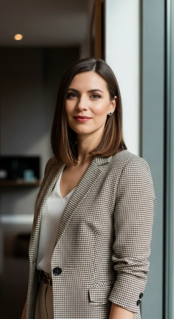 Stylist Suggestion: Choose pointed-toe ankle boots to elongate your legs. Layer delicate necklaces to draw attention upward, balancing the cropped cut with subtle elegance.