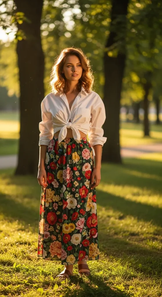 9. Knotted Shirt with Maxi Skirt
