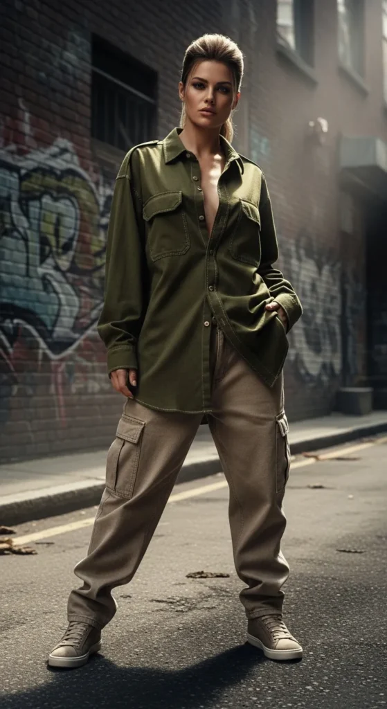 13. Oversized Shirt with Cargo Pants