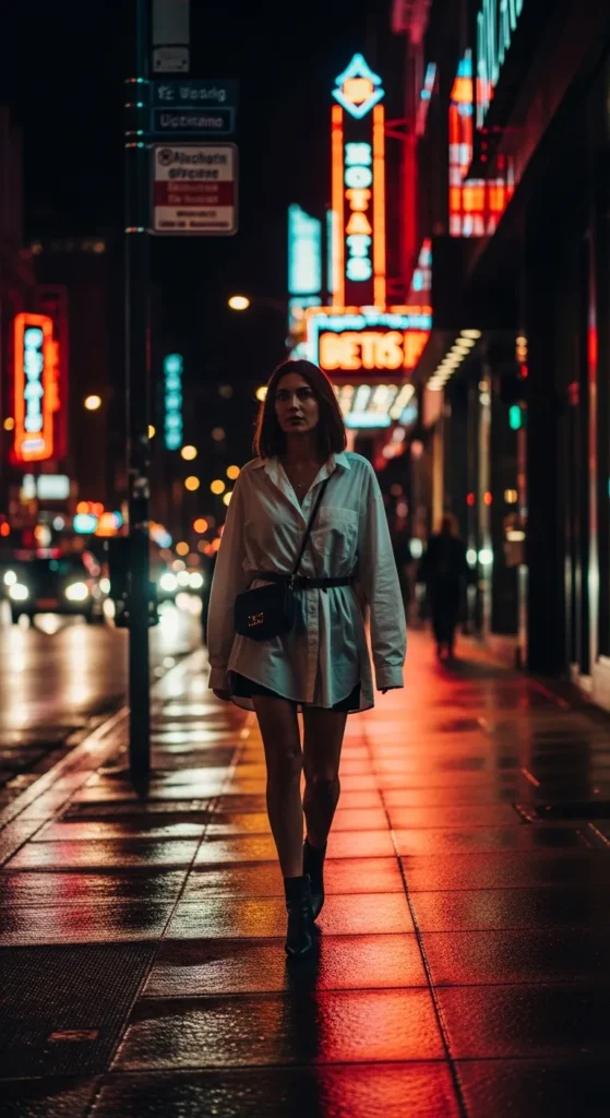 Tuck your oversized shirt into a mini skirt and finish with ankle boots. This mix of proportions feels playful yet grounded.