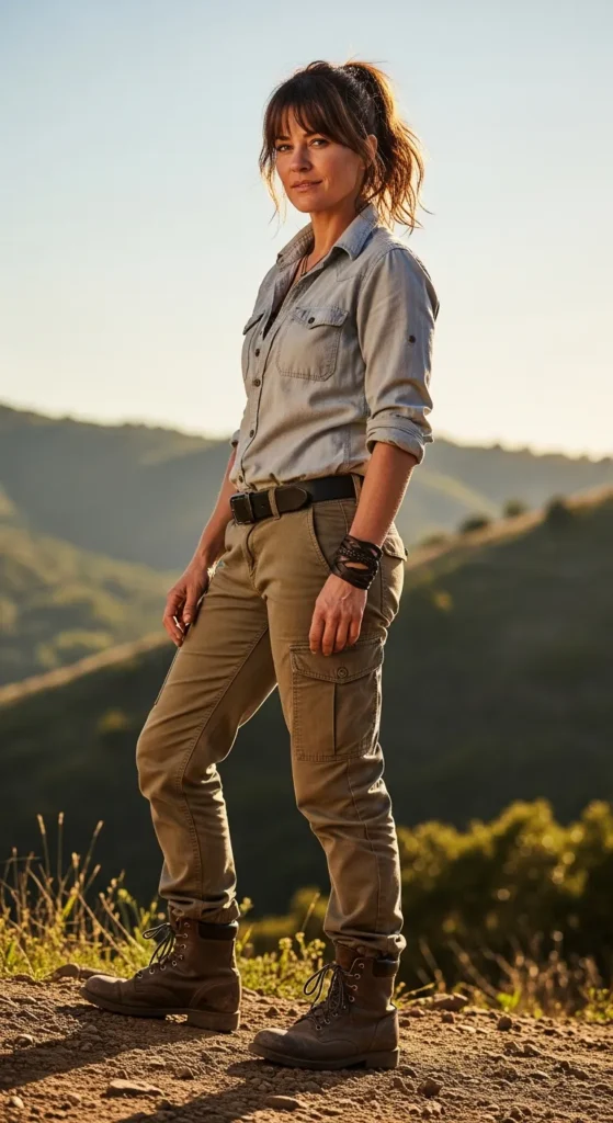 A utility style shirt paired with khaki pants leans into an effortlessly cool, functional vibe. It feels practical, grounded, and perfect for busy days.