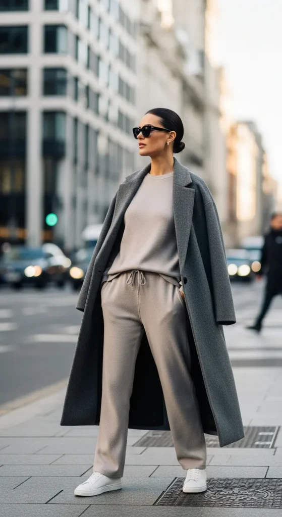 Stylist Suggestion: Add sleek sneakers and sunglasses. The modern accessories prevent the look from feeling like loungewear and make it street-ready and stylish.