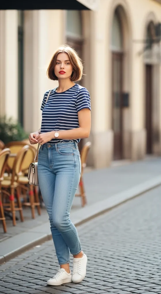9. Striped Tee and French-Inspired Denim