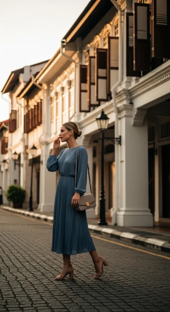 Stylist Suggestion: Pair with block-heel sandals for comfort and stability on uneven streets, while still adding a graceful lift.
