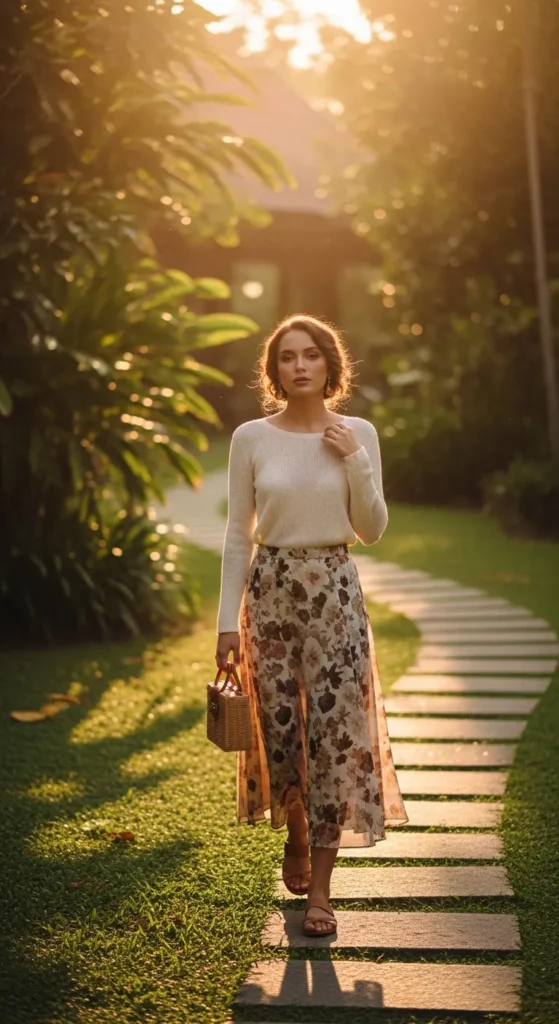 Stylist Suggestion: Choose neutral footwear to let the skirt print shine. This keeps the outfit balanced and photo-ready without overwhelming the look.