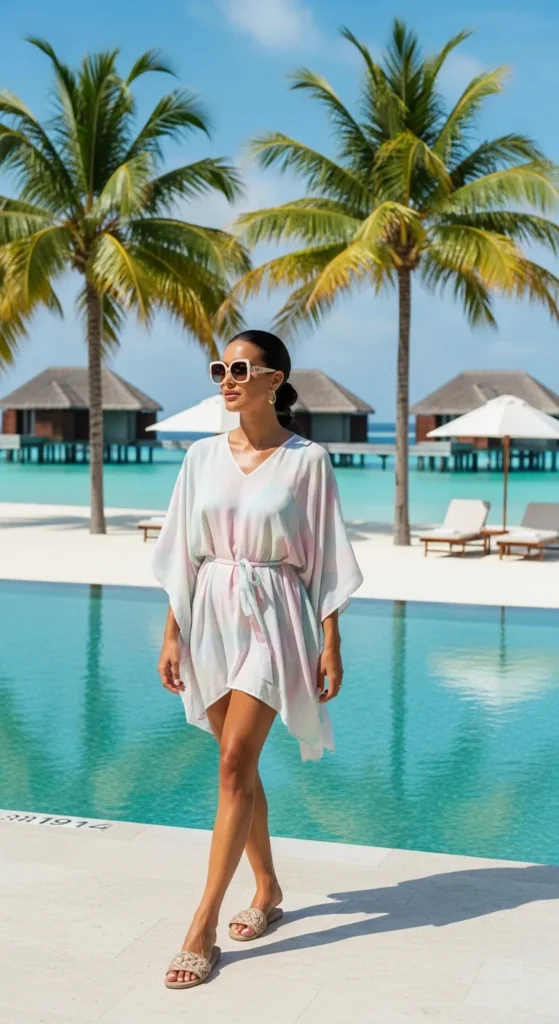 A soft, airy kaftan cinched lightly at the waist offers effortless glamour without trying too hard. It’s ideal for slow mornings, resort lounging, or transitioning straight from poolside to lunch.