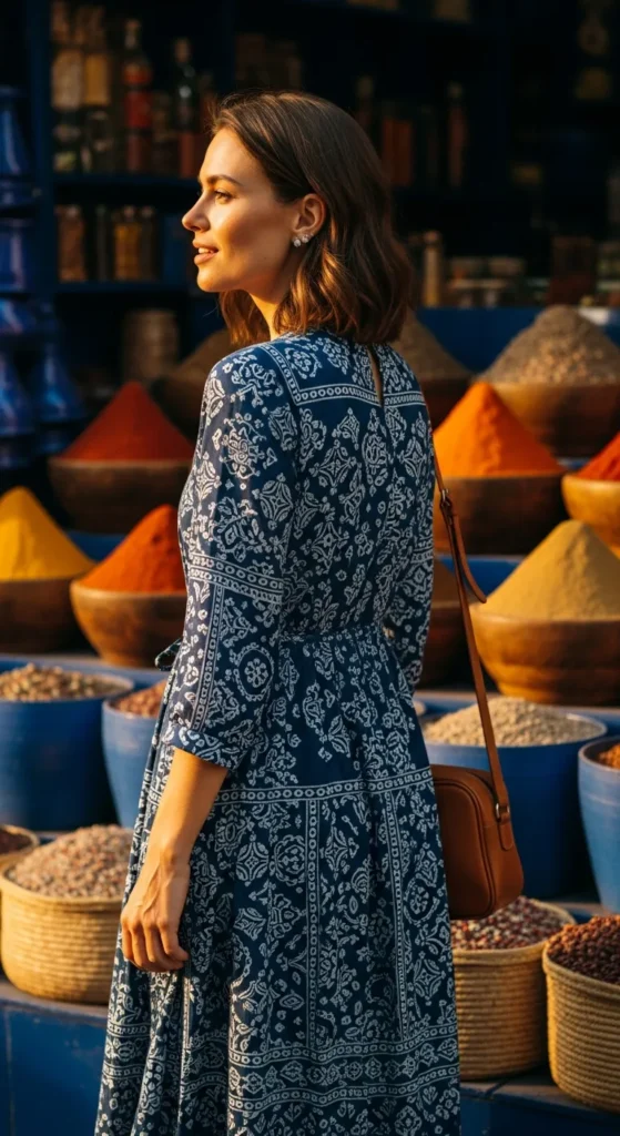 If you’re planning market strolls, café pauses, and golden-hour rooftop moments, these outfit ideas blend comfort, modesty, and personality, without feeling costume-like. Think breathable fabrics, vibrant palettes, and silhouettes that move beautifully through the Medina.
