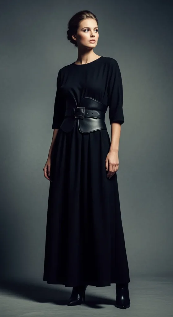 A simple flowy maxi becomes instantly styled with a statement belt. This look feels intentional yet easy, proving that small details can completely transform winter outfits.