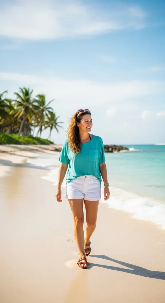 Stylist Suggestion: Pair with woven sandals and a shell bracelet; the textures complement the coastal theme and make the outfit feel more connected to the beach surroundings.