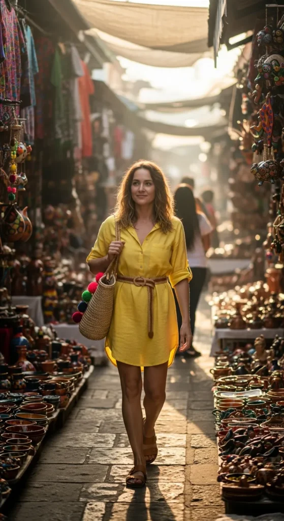 Stylist Suggestion: Add woven espadrilles and a straw crossbody bag. These textures tie into local artisan craftsmanship and keep the look grounded and vacation-ready.