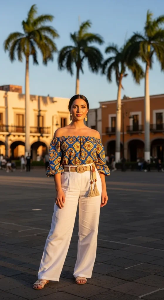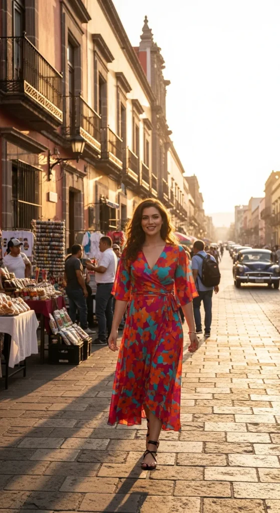 Stylist Suggestion: Go for a crossbody woven bag. It keeps your hands free while exploring and ties into the natural textures that make Mexico-inspired outfits feel authentic.