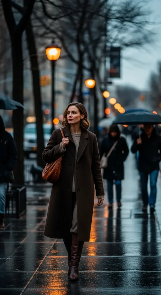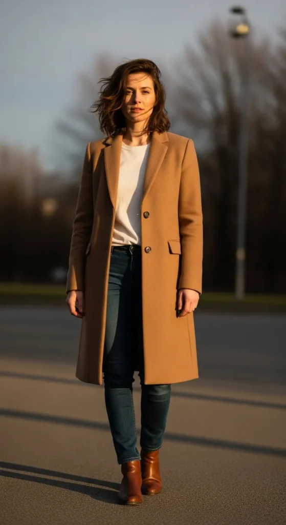 Stylist Suggestion: Choose brown leather boots to echo the coat tone. This subtle repetition creates visual harmony and makes the outfit feel thoughtfully styled.