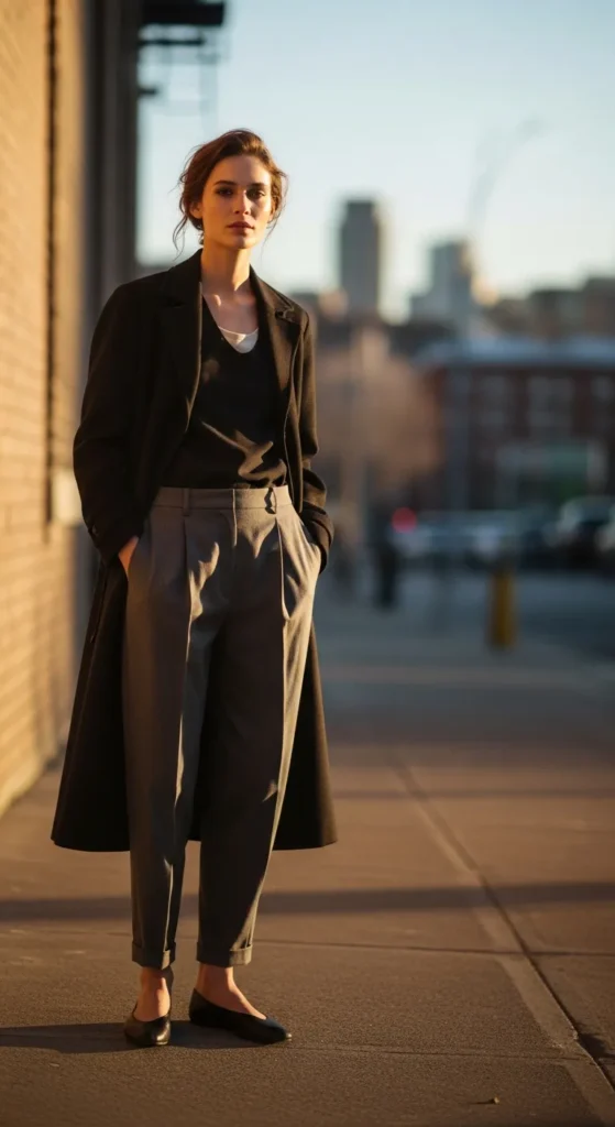 17. Simple Coat with Relaxed Trousers