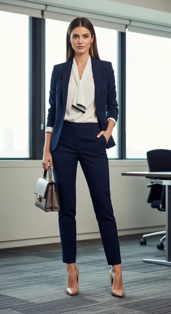 Navy blue pants are a timeless wardrobe staple that effortlessly elevate your style. From office meetings to casual brunches, they can be styled in countless ways to achieve a polished and chic look. Today, we’re exploring 17 creative outfit ideas that pair navy blue pants with versatile tops, textures, and accessories to keep your wardrobe fresh, functional, and fashion-forward. Each idea comes with a stylist tip to make your outfit stand out and an AI image prompt to visualize it perfectly.