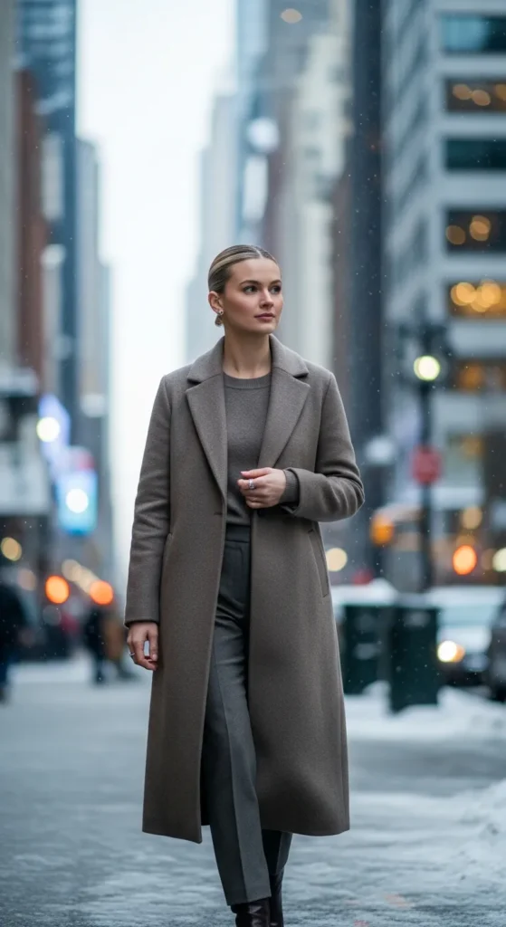 A long wool coat layered over a monochrome outfit feels powerful and timeless. It’s the kind of look that instantly elevates everything underneath without needing extra effort.