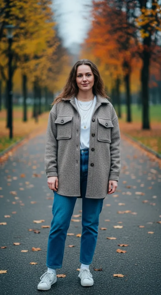 14. Neutral Shacket with Straight Jeans