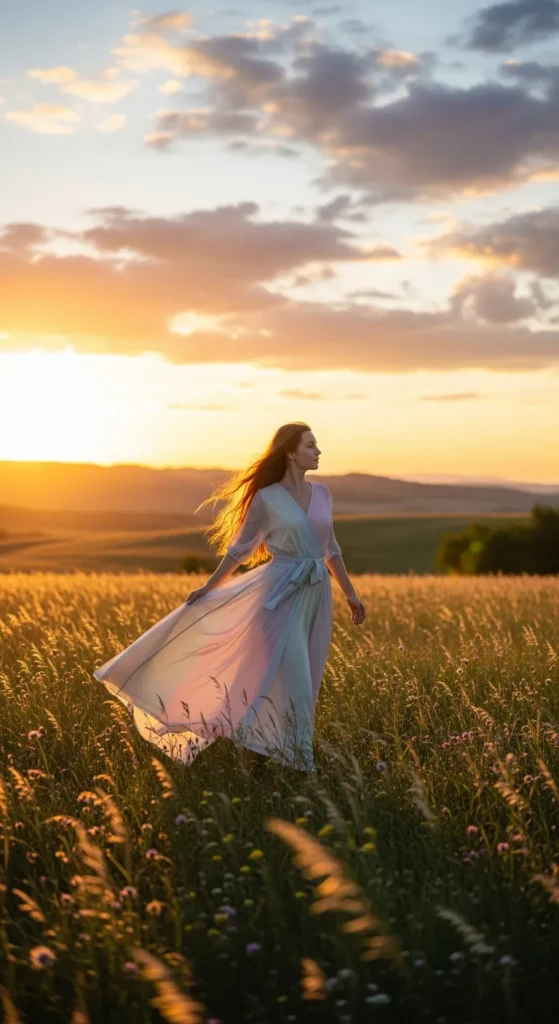 A flowy maxi dress with a subtle waist tie gently shapes the body while allowing movement and comfort. The long silhouette enhances height, making it perfect for breezy walks or outdoor gatherings.