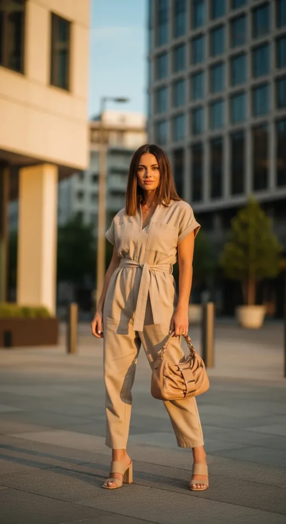 Stylist Suggestion: Go for block heels and a structured handbag. A sleek straight hairstyle enhances the clean lines of the jumpsuit.