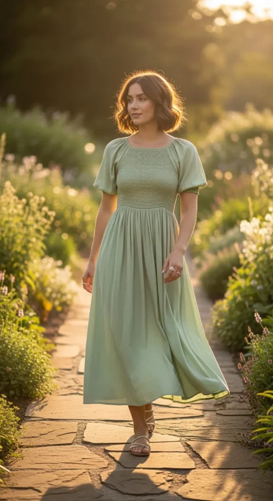 Stylist Suggestion: Add delicate rings and soft curls to enhance the romantic feel. Flat sandals keep the outfit grounded and wearable.