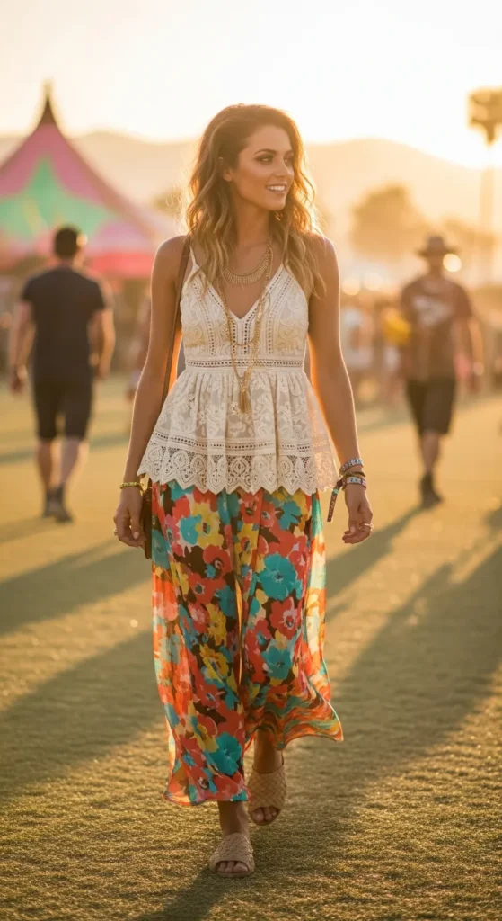 Stylist Suggestion: Choose layered necklaces and woven sandals. The textures complement the bohemian vibe and enhance the relaxed elegance.