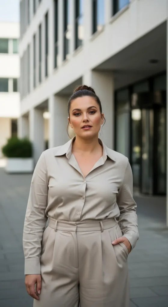 A crisp button down paired with wide leg pants offers structure and flow at the same time. This outfit feels powerful yet comfortable, making it great for workdays or stylish daytime events.