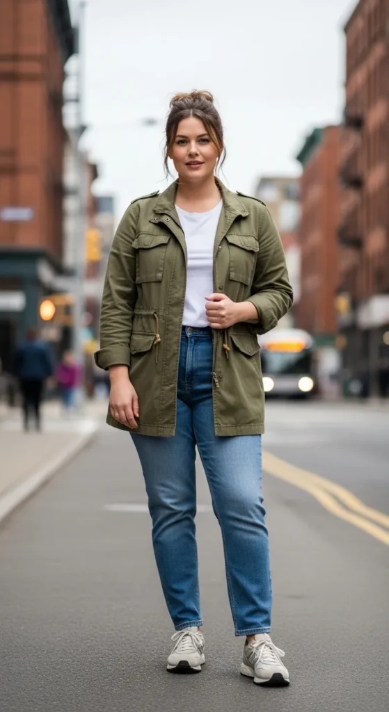 Stylist Suggestion: Cinch the jacket slightly at the waist and add sneakers. This defines your shape while keeping the overall look relaxed and functional.