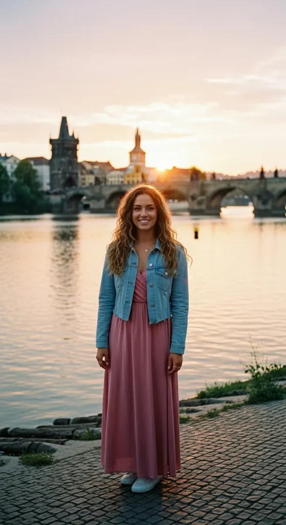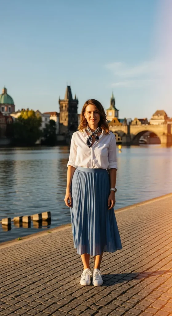 Stylist Suggestion: Add soft brown leather sandals and a woven hair ribbon. The earthy tones balance the brightness of white and complement Prague’s warm-toned buildings beautifully.